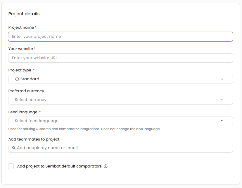 Projects in Sembot are basic form of segmentation. They can be an eCommerce, market or groups of feeds. One project represents one store/market in which the store operates.